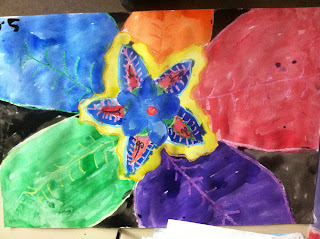 This week (April 19th) students looked at the work of MC Escher for inspiration and developed their own patterns. They drew their designs in oil pastels and then added watercolors over the top to fill the white space in the background and make the pastel colors "pop"! Here are some examples from this week's project: